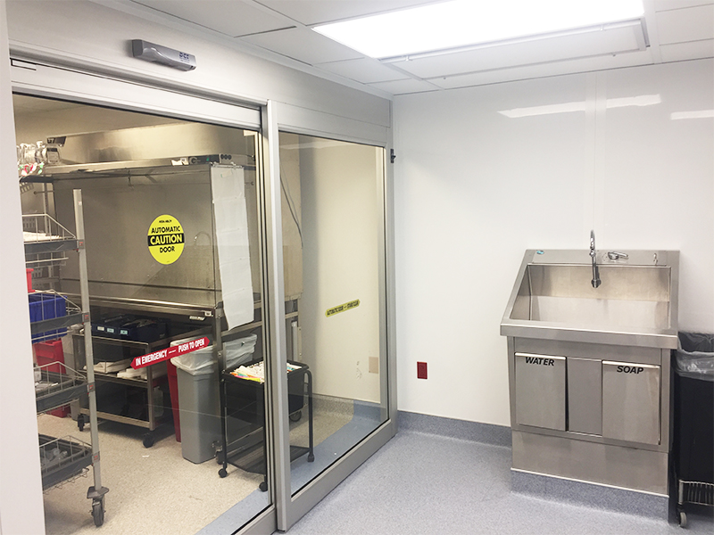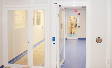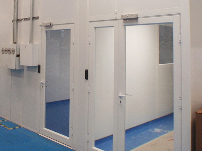 Automatic doors provide a useful function in clean room environments, increasing productivity and improving safety of transporting delicate and expensive equipment. Designed for your needs - adaptable to your application. Available in full breakout or fixed sideline configurations, Cleanroom doors are equipped with 45 degree sloped glass stops to prevent dust build-up and non-shedding weather-stripping. The cleanroom sliding door is designed to the needs of your requirements.