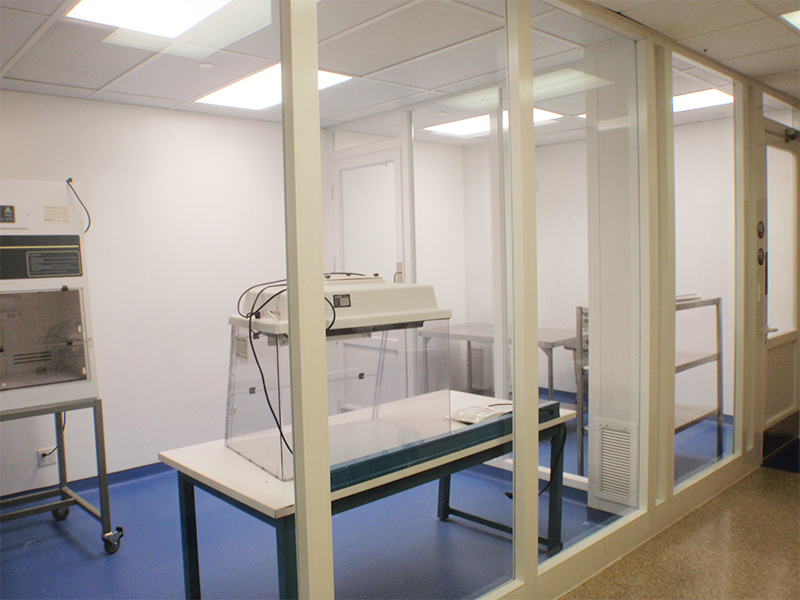 Broadcast epoxy resin, and welded seam vinyl prohibit dust and microbes from entrapment and contamination. High performance bacteriostatic and fungistatic floor coating systems help reduce contamination by eliminating these breaches in wall and floor surfaces, as well as furnishing additional benefits to clean spaces, such as the special needs of cleanroom facilities flooring for clean space operations. Perforated raised flooring systems to facilitate laminar airflow patterns.