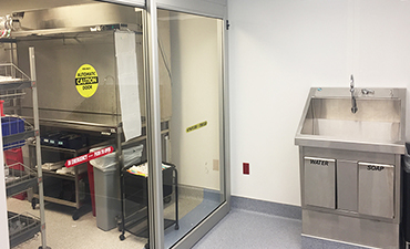Antimicrobial aluminum construction components featuring 2-5/8" thick frames from 0.20 aluminum powdercoated metals with 3/16" tempered safety glass(Standard), 1/4" laminated safety glass(Optional), or 1/2" insulated safety glass(Optional). Dual antimicrobial door gasketing. Powdercoated mortise locks, push / pull plates, and door sweeps available. Other options for automatic closers, magnetic locking systems, and automatic threshold devices also available.